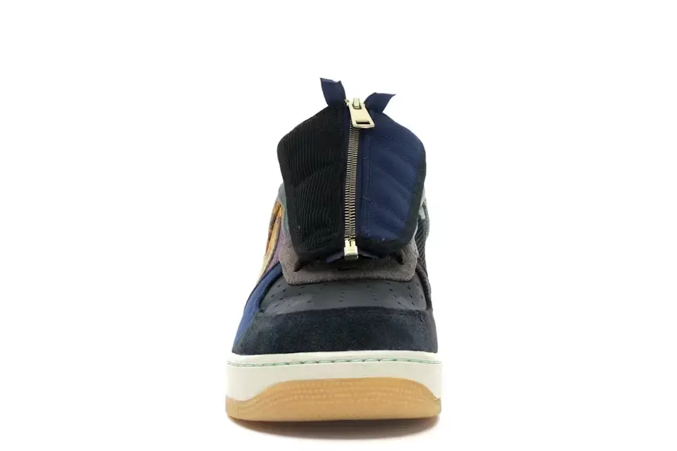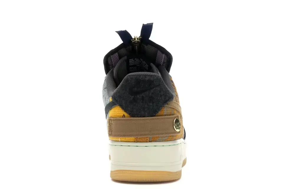 This Travis AF-1 features a patchwork upper comprised of camouflage, corduroy, duck canvas, flannel, leather, suede and wool. Unmistakable Cactus Jack insignias are placed throughout the silhouette. A sail midsole and gum rubber outsole completes the design. These sneakers released in November of 2019