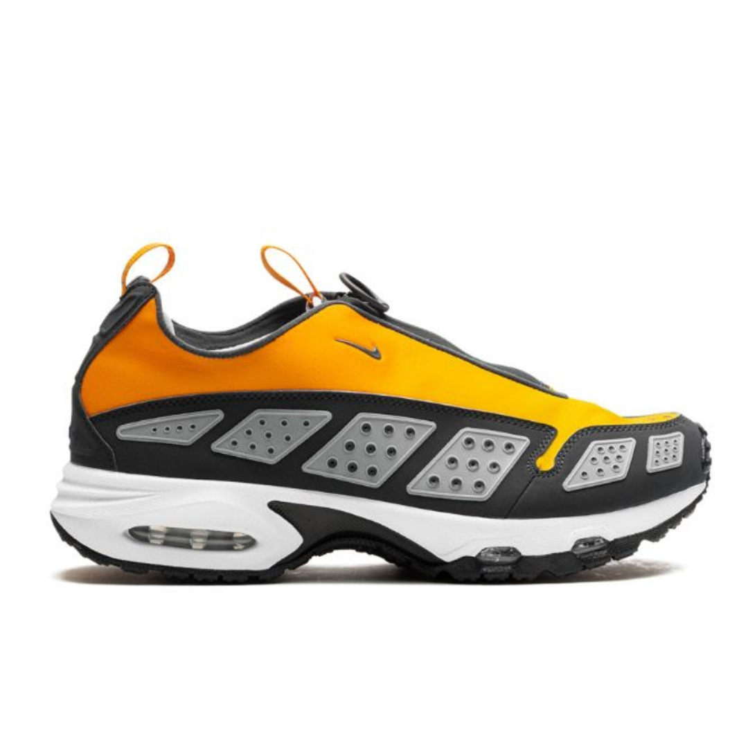 At the Canyon Gold Deep Ocean (Women’s) Nike Air Max Sunder, A zip fastening secures the polyurethane shroud and features a large circular pull tab as well as black-tone hardware. Two pull tabs help you put on or take off the shoe, while the rubber outsole houses responsive, visible Air Max units in the heel. In addition, Nike Air cushioning in the forefoot provides bounce. What makes this sneaker stand out is the ultra-bright colorway of Canyon Gold, Deep Ocean, and Speed Yellow with accents in Light Smoke Gray. The orange and yellow hues fade across the shroud and add pops of color to the outsole.